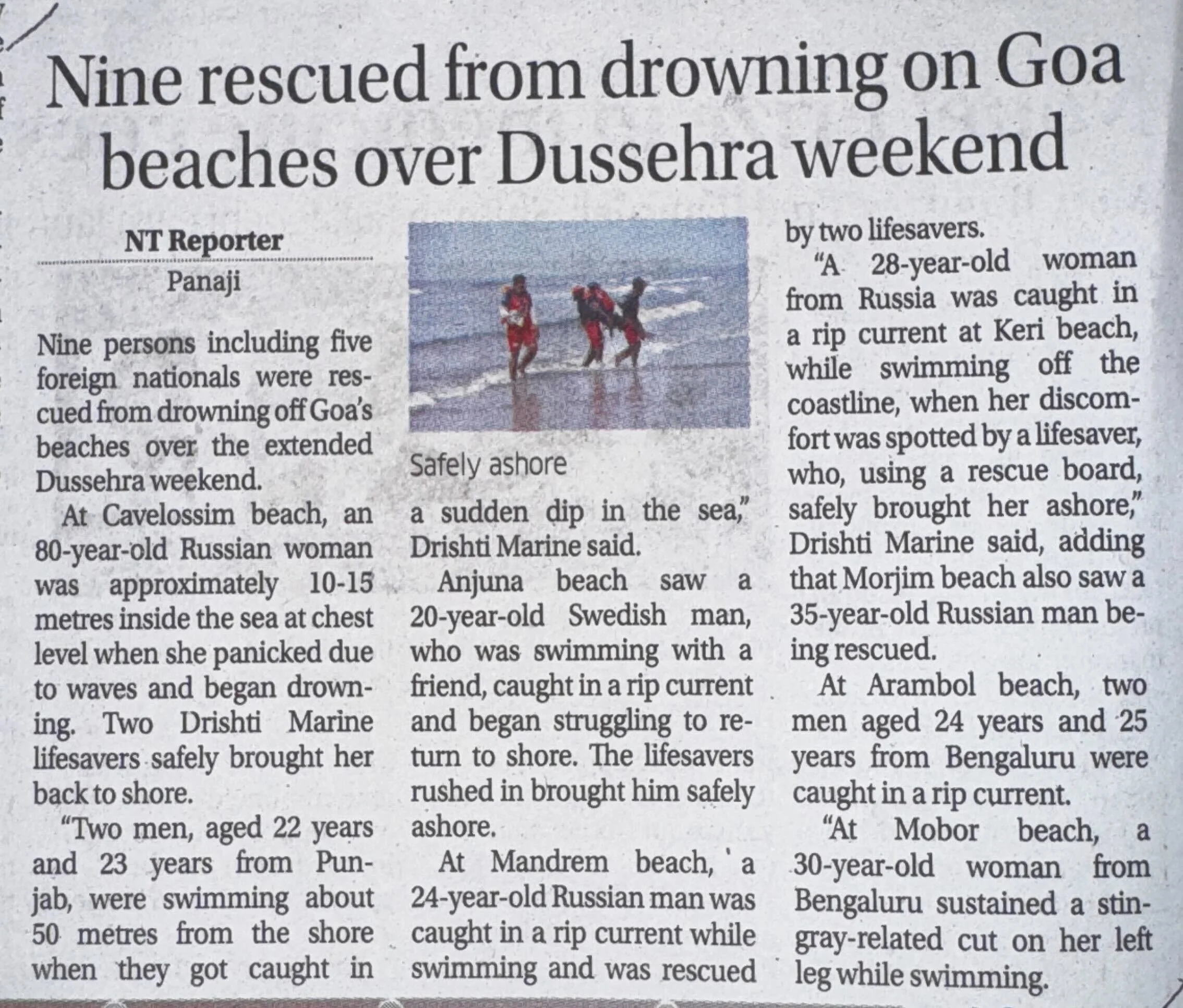 Drishti-gomantak3ml.    5 Oct.   five tourist saved at Calangute.jpg